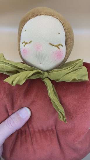 To refresh her rosy cheeks over time, gently pat colour using a Stockmar red beeswax crayon on a piece of cotton fabric.